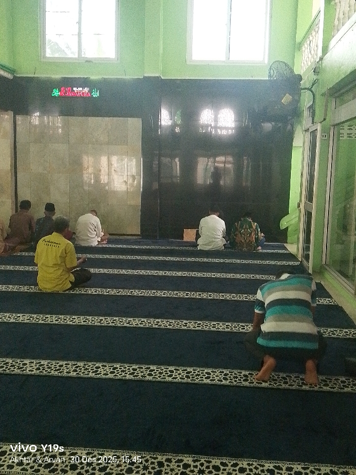 A wide-angle interior photograph captures a prayer room or mosque in Jagapura Kidul, Indonesia