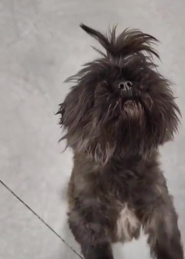 small, gray, shaggy dog with a topknot
