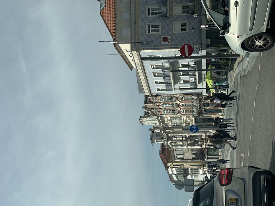 The image depicts a street scene in Aveiro, Portugal, specifically from Rua do Dr