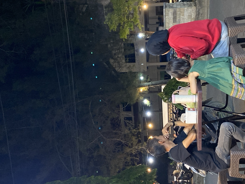 The scene depicts a nighttime outdoor setting in Lhokseumawe, Indonesia, at what appears to be a street-side dining area or cafe