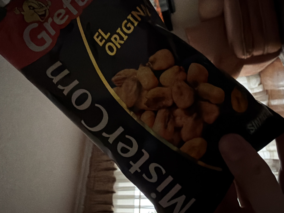 - "A tilted, close-up view shows a black bag of "MisterCorn" brand snack" by FM-QzkI72, licensed under CC BY 4.0