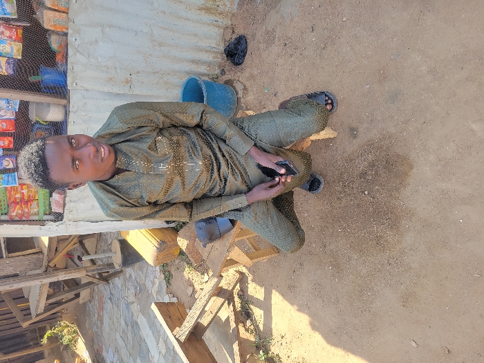 - "A male individual, estimated to be in his 20s or 30s, is captured in a squatting or low-sitting position on a rudimentary wooden stool in an outdoor setting in Suleja, Nigeria" by FM-yxRVT2, licensed under CC BY 4.0