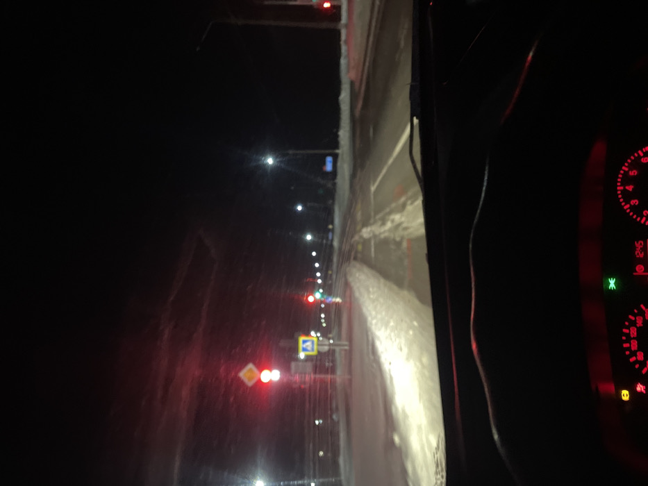 - "A nighttime view from inside a car shows a snow-covered road and sidewalk along a city street" by FM-aSc183, licensed under CC BY 4.0