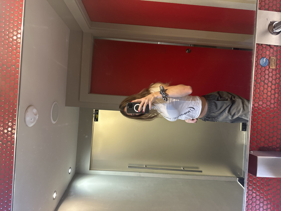 - "This image presents a mirror selfie taken by an individual in a public restroom or changing area of the Hard Rock Cafe in Brussels, Belgium" by FM-6uJGr1, licensed under CC BY 4.0