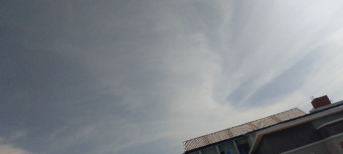 - "The image provides an upward-angled view, predominantly featuring a partly cloudy daytime sky above a section of a building in Jos, Nigeria" by FM-8u2ON2, licensed under CC BY 4.0