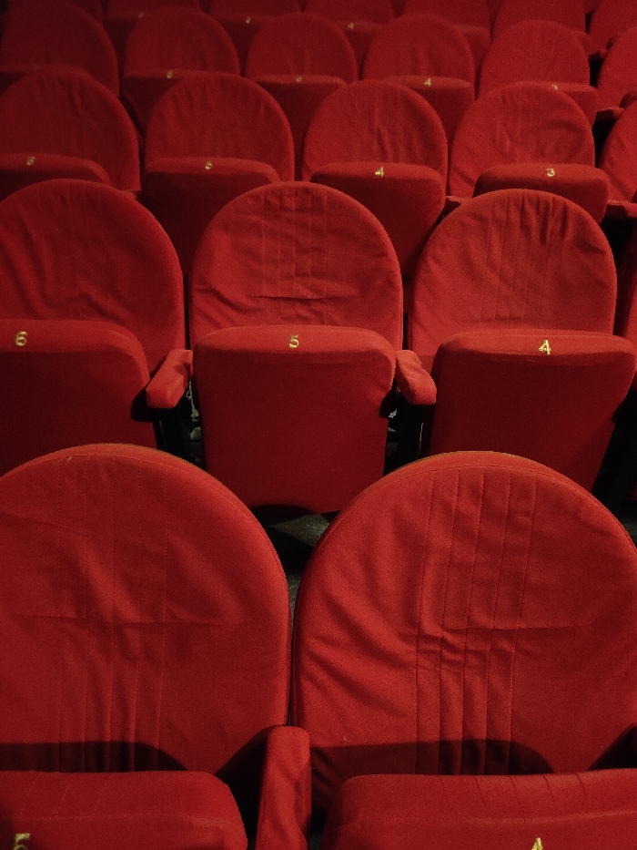 - "Rows of unoccupied red, upholstered theatre seats dominate the frame" by FM-5lleo2, licensed under CC BY 4.0