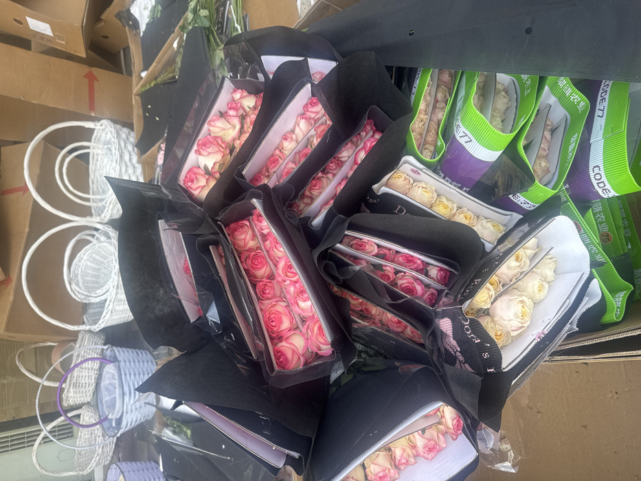 - "The image displays an indoor scene in Tashkent, Uzbekistan, featuring a large quantity of packaged roses and assorted baskets" by FM-w1xcp1, licensed under CC BY 4.0
