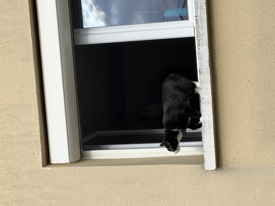 - "An external view of a building in Cachan, France, shows a black and white cat positioned on a window ledge" by FM-2ffbq1, licensed under CC BY 4.0