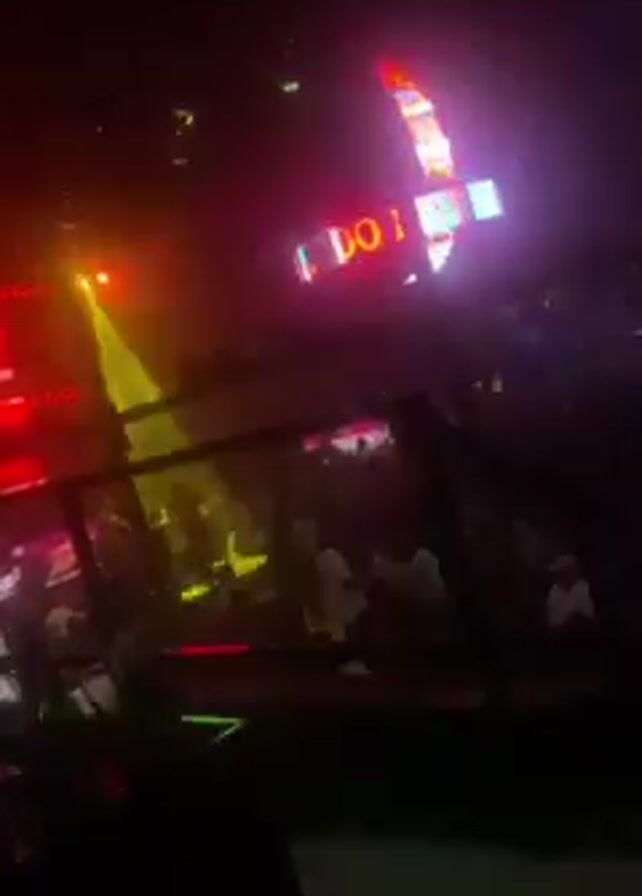 The video is taken inside a crowded nightclub or concert venue, presumably at night