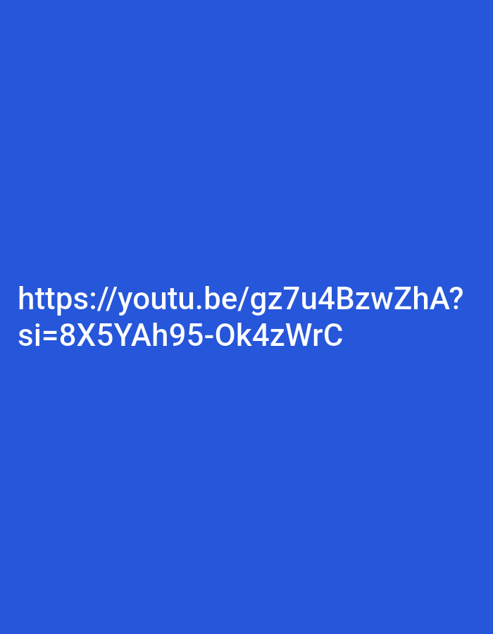 The image displays a solid, uniform royal blue background. Centered horizontally in the lower portion of the frame, white sans-serif text is present, providing a YouTube URL: "https://youtu.be/gz7u4BzwZhA?si=8X5YAh95-Ok4zWrC". No other subjects, objects, people, actions, interactions, or environmental details are discernible within this image. The image does not depict any specific location, including Pernik, Bulgaria.