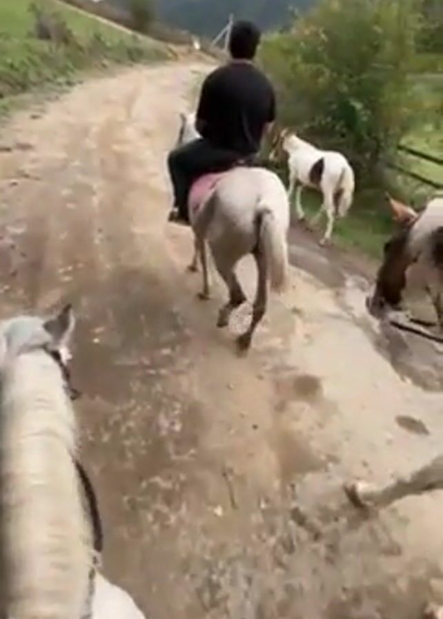 - "point-of-view perspective of horseback riding on a dirt road" by FM-1kCvX2, licensed under CC BY 4.0