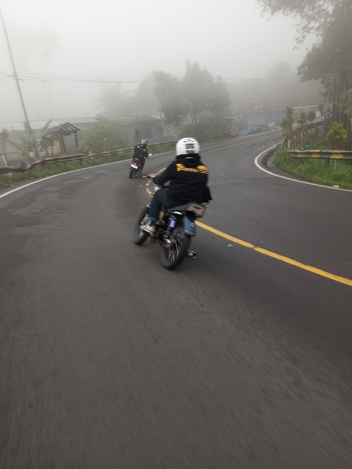 - "This image depicts two motorcyclists traveling on a winding asphalt road enveloped by dense fog in Ariyalai, Sri Lanka" by FM-Q3bjq1, licensed under CC BY 4.0