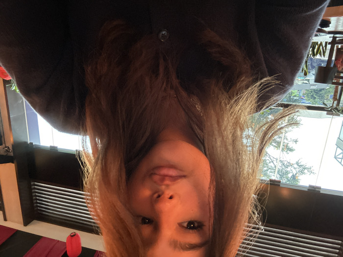A young female individual is depicted in a close-up, head-and-shoulders, selfie-style photograph taken indoors in Metepec, Mexico. The subject has long, light brown hair, which frames her face and shoulders. She wears a dark, possibly navy or charcoal, long-sleeved top with a single visible button on the front, positioned towards the viewer's lower left. Her face is illuminated by a warm, orange-toned light, highlighting her features, and she presents a posed expression with slightly pursed lips. The background reveals an indoor setting with elements suggesting a commercial establishment, likely a restaurant or cafe. To the viewer's right, a red paper lantern hangs from a light-colored ceiling, which also features red fabric or decorative accents. Below the lantern, a window is partially covered by dark, horizontal blinds. To the viewer's left, a large clear window offers a view to an exterior urban environment. Outside, tree branches are visible against a bright, hazy sky, and part of a building structure with visible windows can be discerned. Green foliage from an indoor plant is also present near the bottom left of this window. The interior space appears to be well-lit by a combination of natural light from the windows and the warm artificial light source.