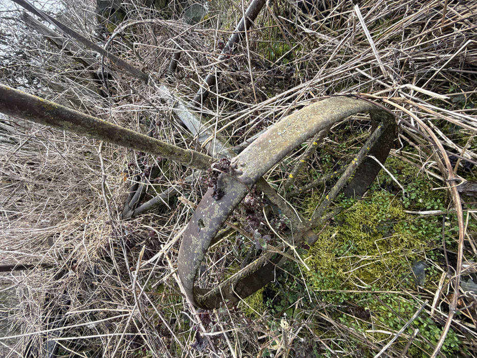 - "The image displays a heavily rusted, curved metal object, approximately 30-40 cm in diameter, partially embedded in overgrown vegetation in Dolna Sekirna, Bulgaria" by FM-OjNlE2, licensed under CC BY 4.0