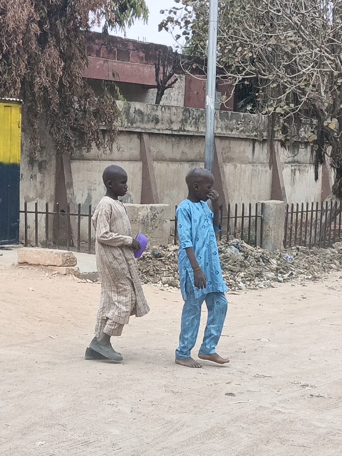 - "The image displays two young males walking left to right on a light brown dirt road in Hotoro South, Nigeria" by FM-EzhfF3, licensed under CC BY 4.0
