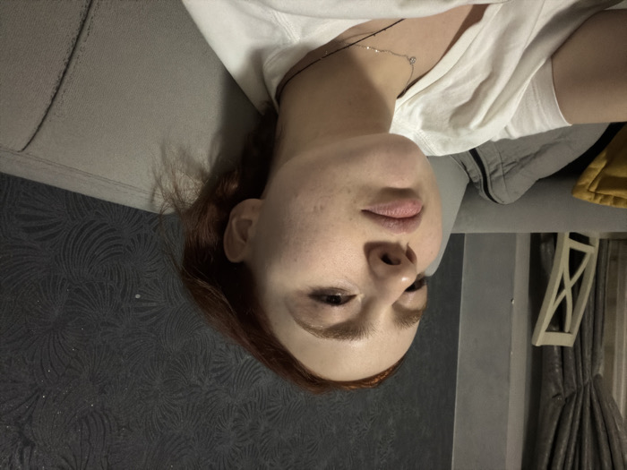 - "A woman with fair skin and red hair lies on a grey couch, facing the camera" by FM-iVf172, licensed under CC BY 4.0