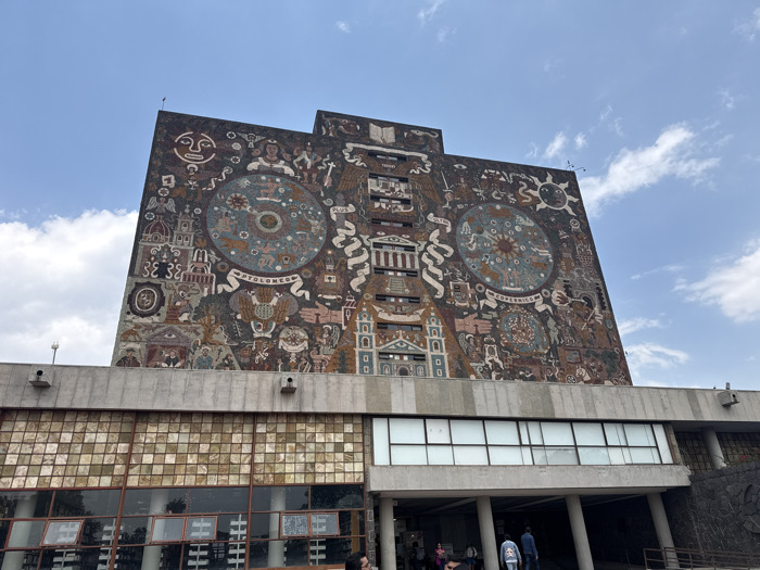 - "An exterior, eye-level, slightly upward-angled shot captures the north face of the Central Library (Biblioteca Central) at the National Autonomous University of Mexico (UNAM) in Mexico City, Mexico" by FM-uvcyJ3, licensed under CC BY 4.0