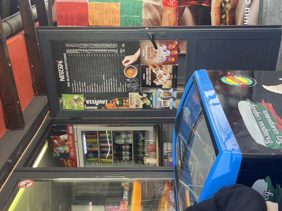 This image depicts the exterior of a commercial kiosk located in Stara Zagora, Bulgaria