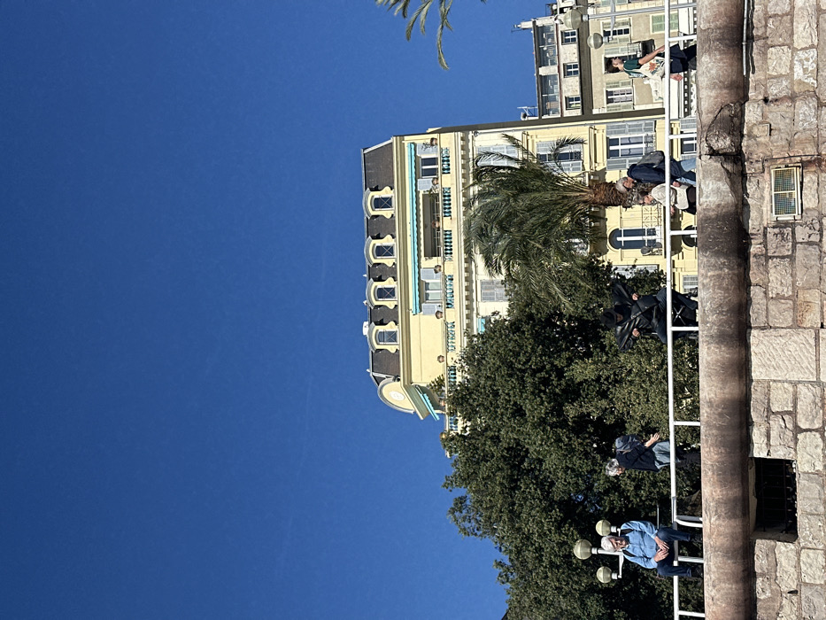 An outdoor scene captured in Nice, France, features a clear blue sky overhead