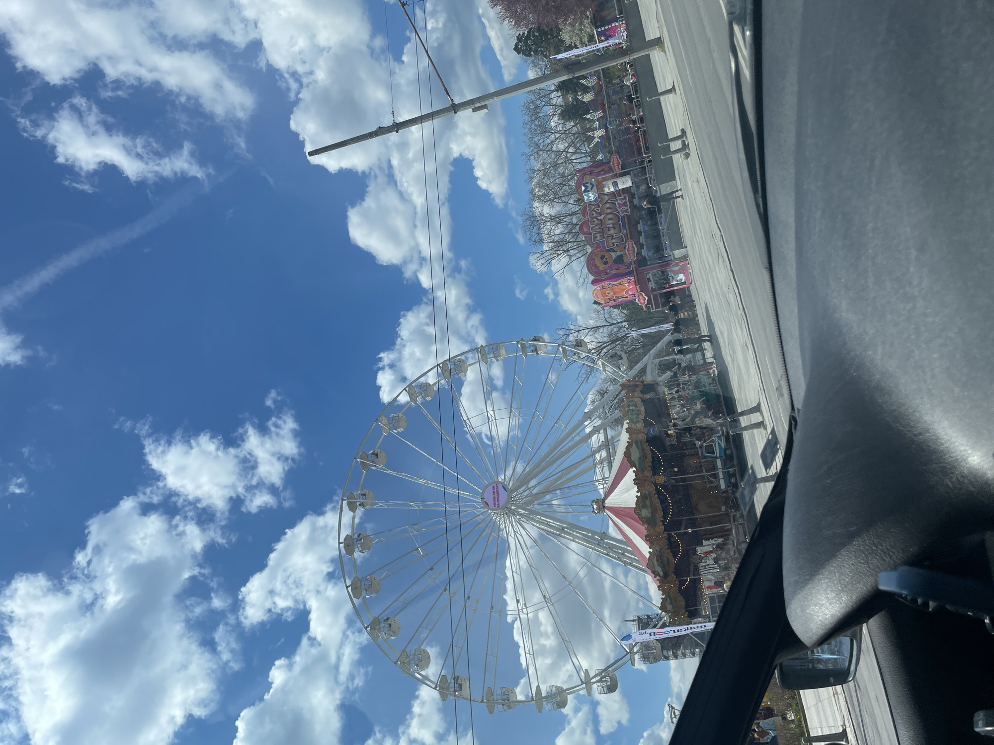 Ferris wheel in Sofia, Bulgaria, likely taken from inside a car