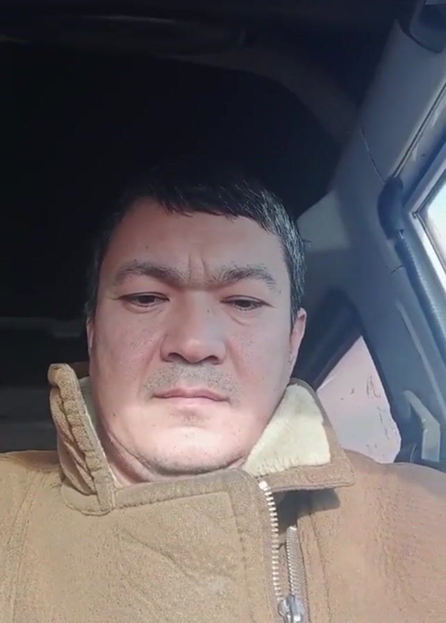 A close-up shot depicts a middle-aged man with short, dark hair wearing a brown jacket with a light-colored, furry collar. He is positioned inside a vehicle, possibly the driver's seat, as suggested by the dashboard and side window visible in the background. His expression appears neutral, and he is looking towards the camera. The lighting suggests it is daytime.