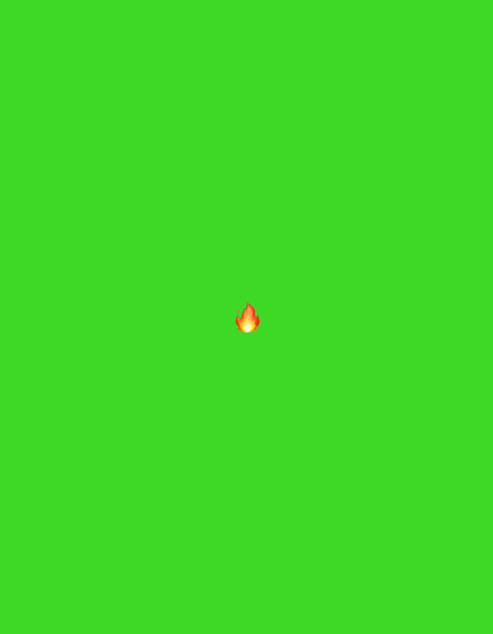 The image displays a uniform, bright green background. Centrally positioned within this green field is a small, digital representation of a flame, consistent with a fire emoji. The emoji features gradients of red, orange, and yellow, suggesting heat and motion. No physical location in the city of Schiltigheim, France, or any other real-world setting is depicted. The scene contains no individuals, physical subjects, objects beyond the described digital elements, actions, or interactions. The environment is entirely a digital, uniformly colored background.