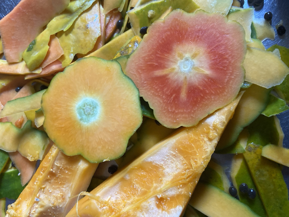- "The scene, located in Oba-Aboji, Nigeria, presents a close-up, overhead view of fruit remnants, consistent with Carica papaya" by FM-tWINy1, licensed under CC BY 4.0