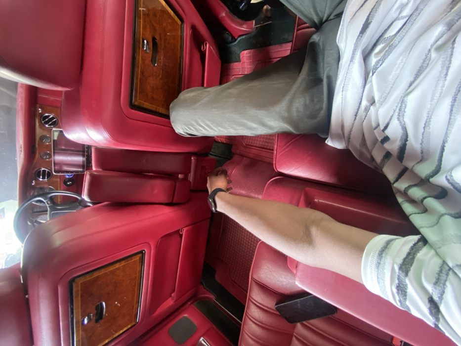 The image depicts the interior of a luxury vehicle, specifically the rear passenger compartment, within the city of Igboefon, Nigeria