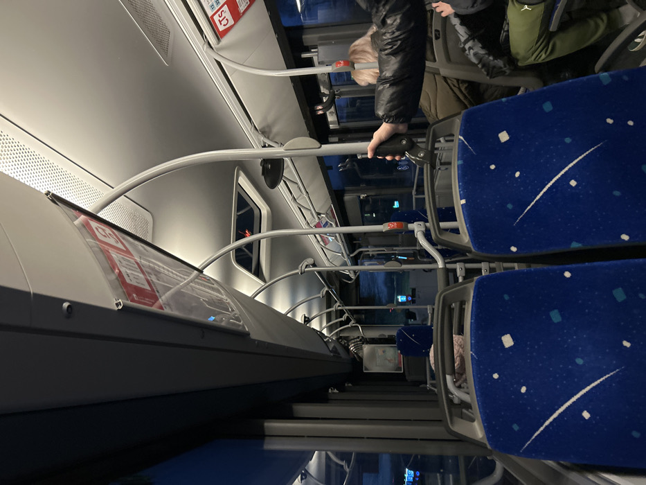 - "The interior of a bus or train features blue seats with white patterns and gray metal frames" by FM-WxYUp2, licensed under CC BY 4.0