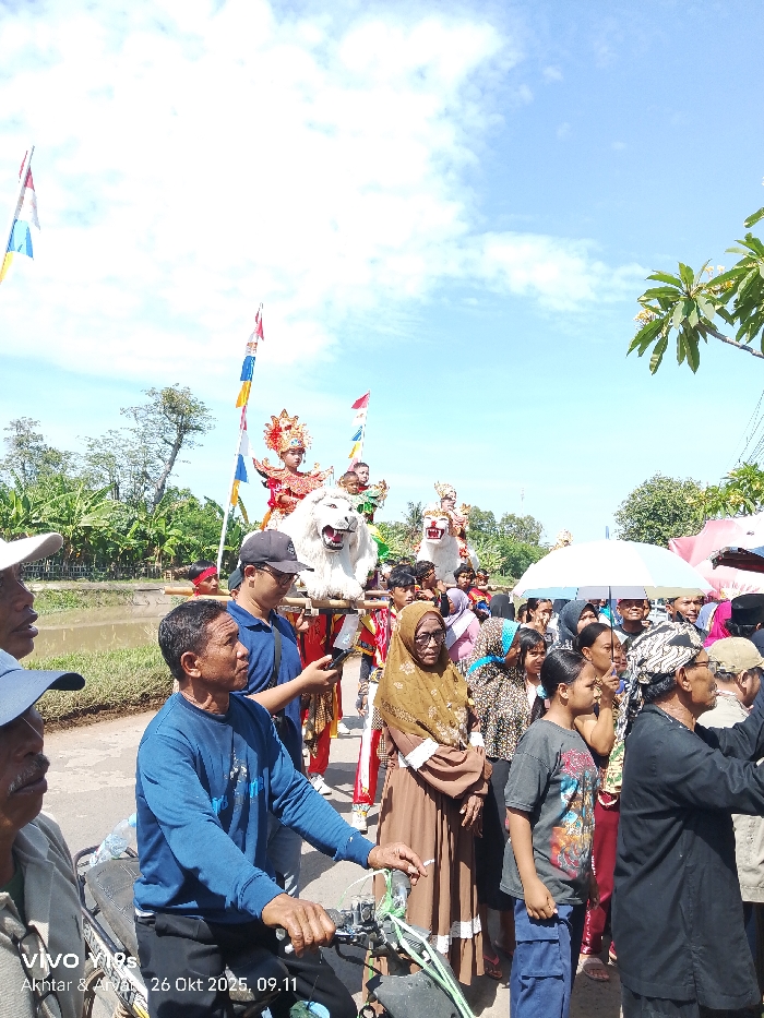 The image captures an outdoor cultural procession in Wanguk, Indonesia