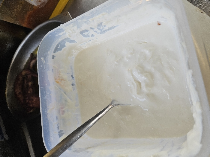 - "The image displays a clear, rectangular plastic container, largely filled with a thick, off-white, creamy substance" by FM-yfXT73, licensed under CC BY 4.0