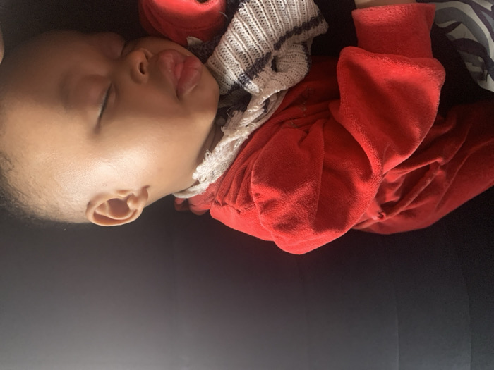 - "A young child, likely an infant, is depicted sleeping on their right side in an indoor setting in Unguwar Gabas, Nigeria" by FM-96Vvh2, licensed under CC BY 4.0