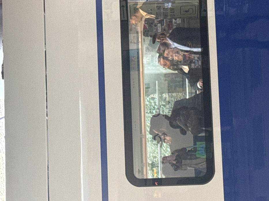 - "The image displays a side view of a modern passenger train carriage, featuring a large rectangular window with a black frame, set within a white and blue exterior" by FM-XPWis2, licensed under CC BY 4.0