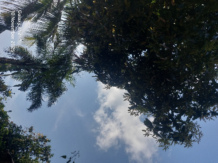- "This image, captured in Akwanga, Nigeria, presents an upward view of tropical tree canopies against a clear blue sky interspersed with scattered white clouds" by FM-iUdvr2, licensed under CC BY 4.0