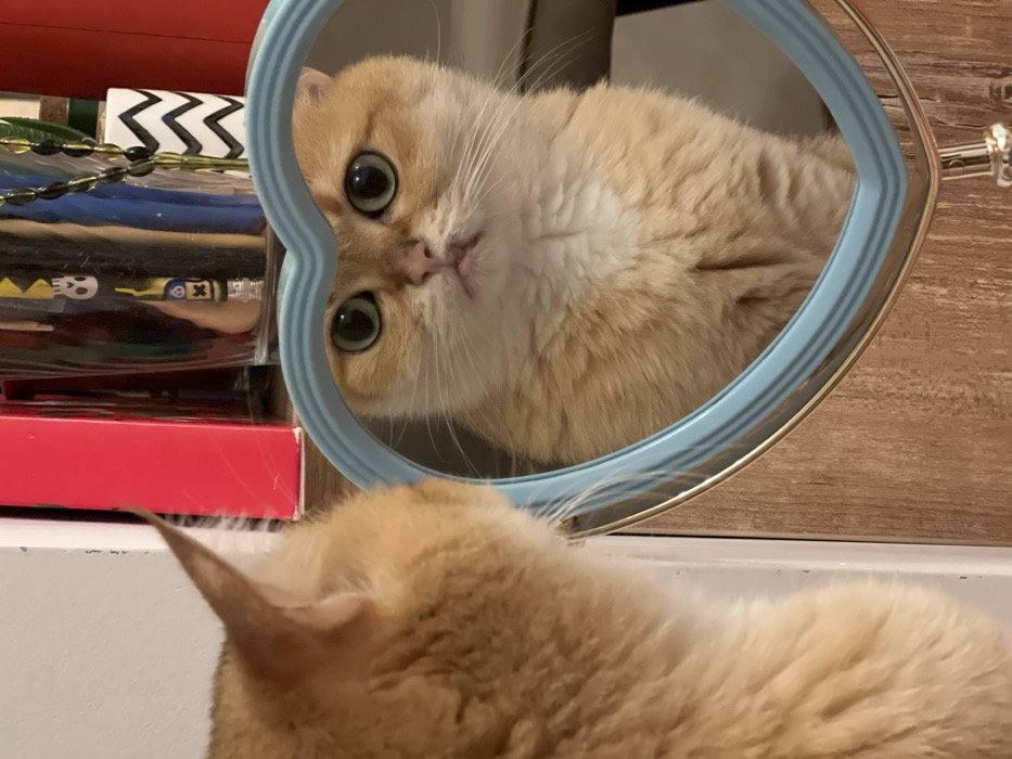 - "A tan cat is depicted with its reflection in a heart-shaped, light blue mirror" by FM-aQUtB3, licensed under CC BY 4.0