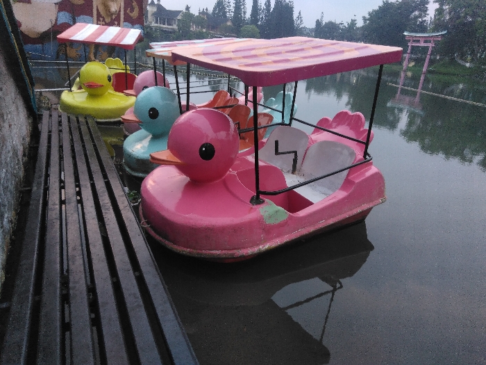- "A row of brightly colored, duck-shaped paddle boats is moored on a body of water in Casa de Paja, Venezuela" by FM-f4dh13, licensed under CC BY 4.0