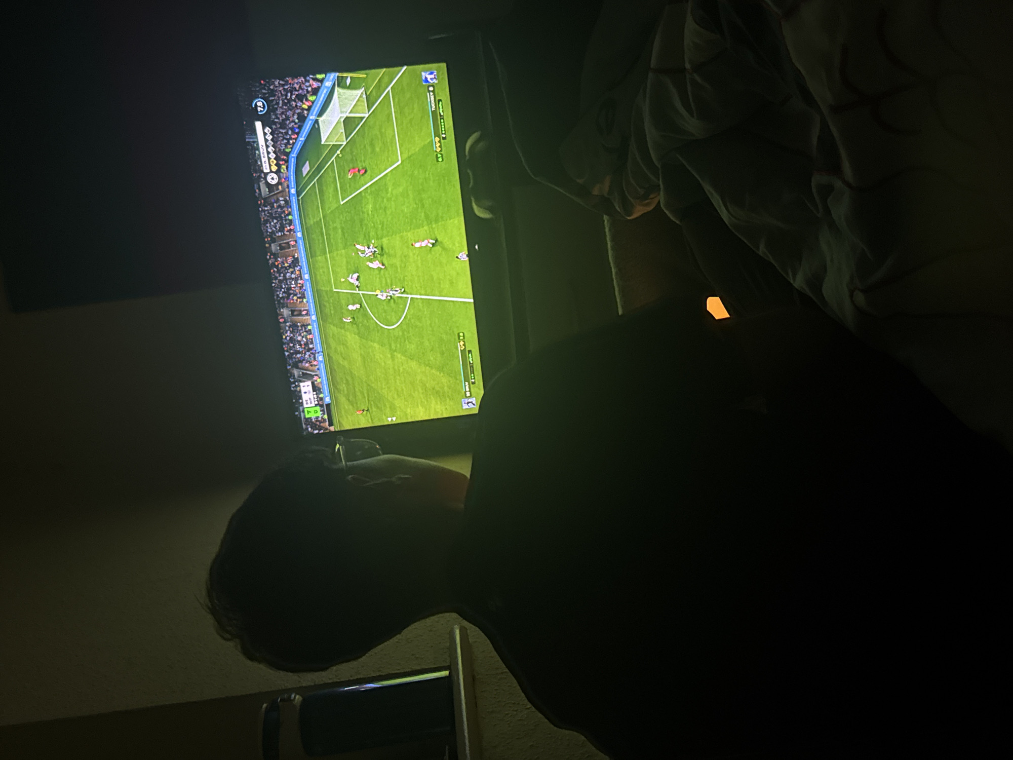 - "A person is lying in bed in a darkened room watching a soccer video game on a television" by FM-LrTPD3, licensed under CC BY 4.0