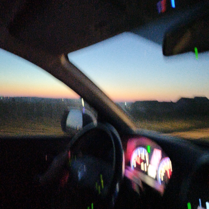 - "The image depicts the interior view from a moving vehicle, likely a passenger car, at twilight in Гожскі сельскі Савет, Belarus" by FM-TzA0d2, licensed under CC BY 4.0