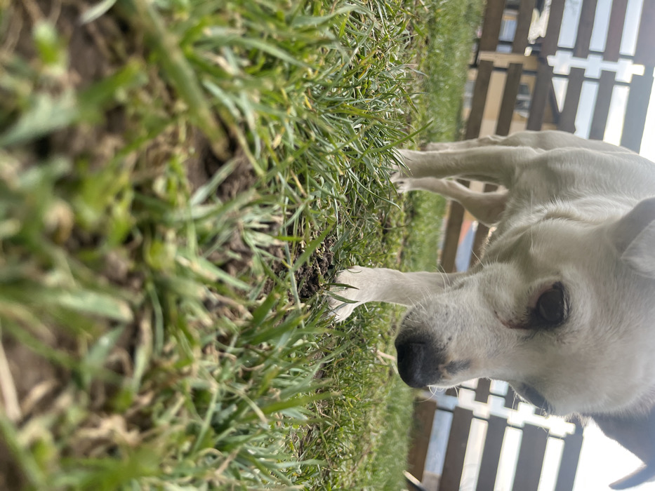 - "A low-angle photograph depicts a small, white short-haired dog in an outdoor, grassy area in Vladaya, Bulgaria" by FM-7mR1N2, licensed under CC BY 4.0