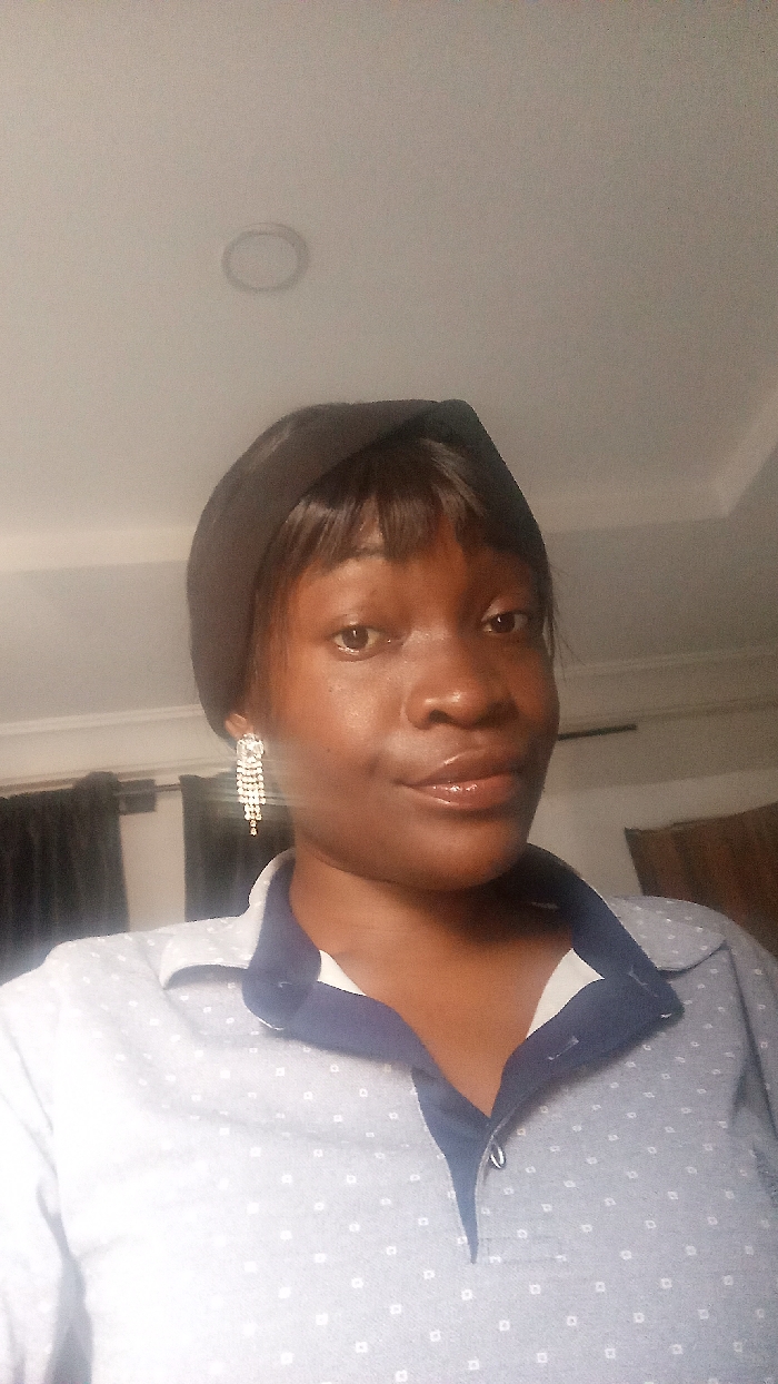 An adult female, identified as being in Lugbe, Nigeria, is depicted in a close-up, chest-up portrait