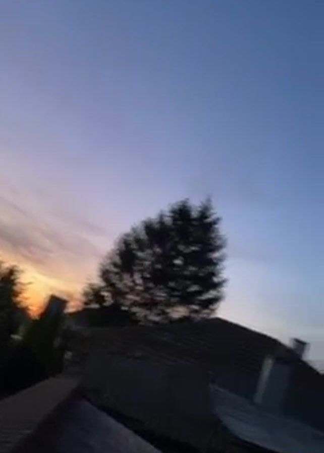 The video begins with a low angle shot of an urban or suburban scene at dusk