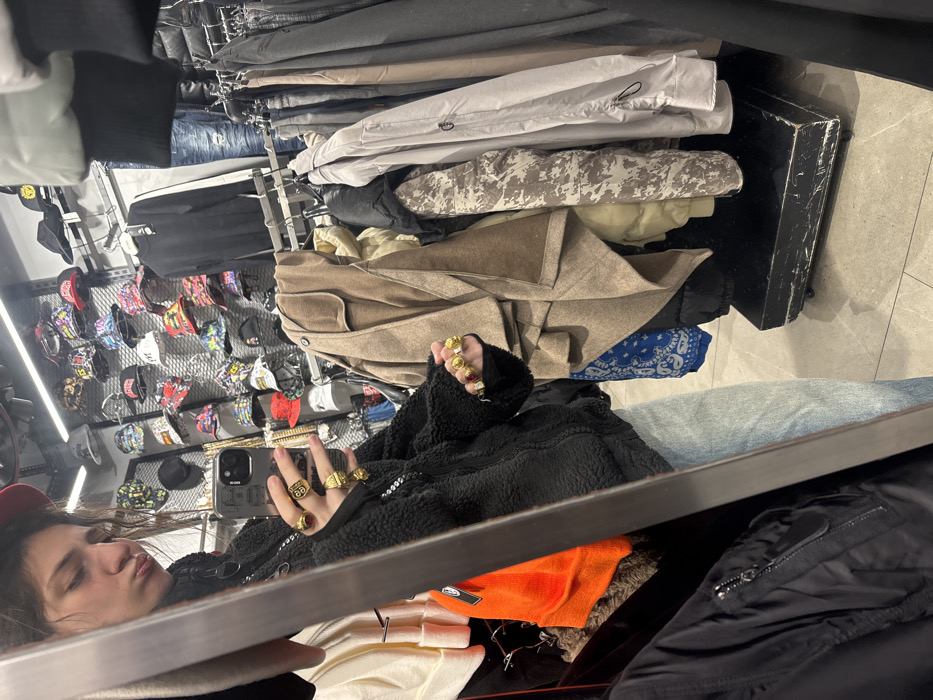 A mirror selfie captures a young individual inside a retail clothing store in Strasbourg, France