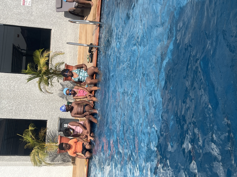 - "Five people sit along the edge of a swimming pool" by FM-jEHqn1, licensed under CC BY 4.0