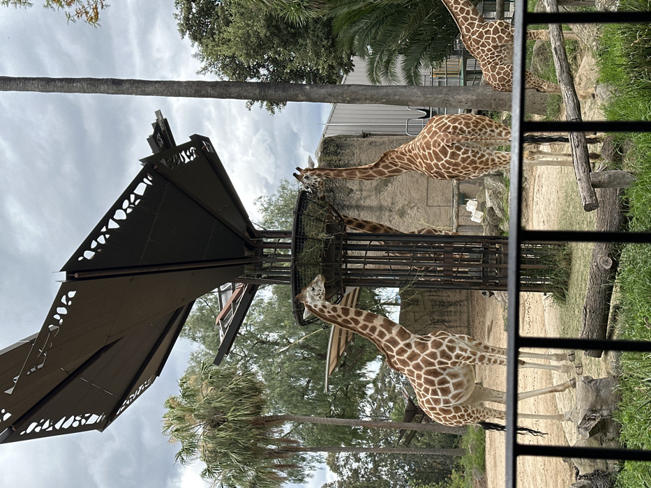 - "Giraffes gather around a feeding station with a shade structure" by FM-P0ePn2, licensed under CC BY 4.0