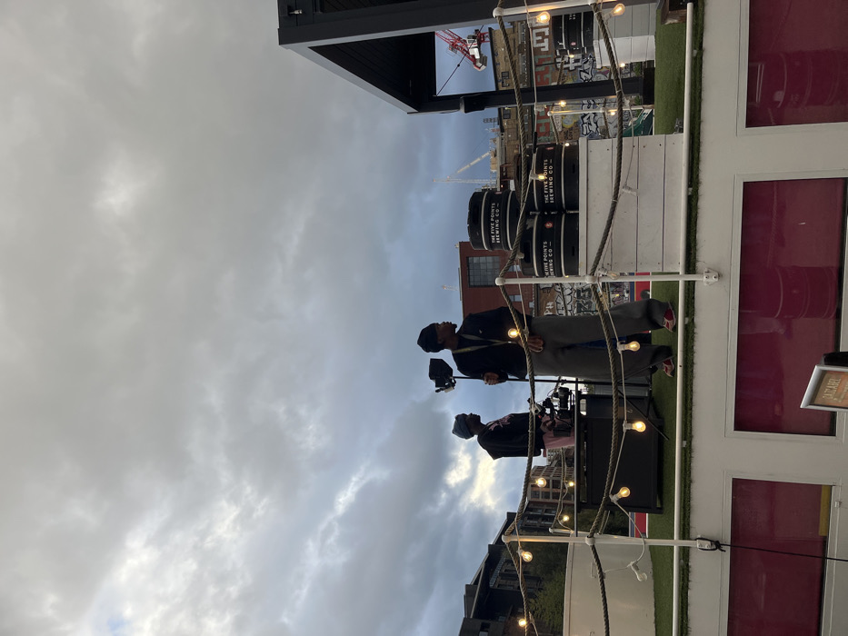 - "The image depicts an outdoor event taking place on the upper deck of a boat or barge, likely situated on a canal in East London, United Kingdom, indicated by the visible "THE FIVE POINTS BREWING CO" by FM-HGSMX2, licensed under CC BY 4.0