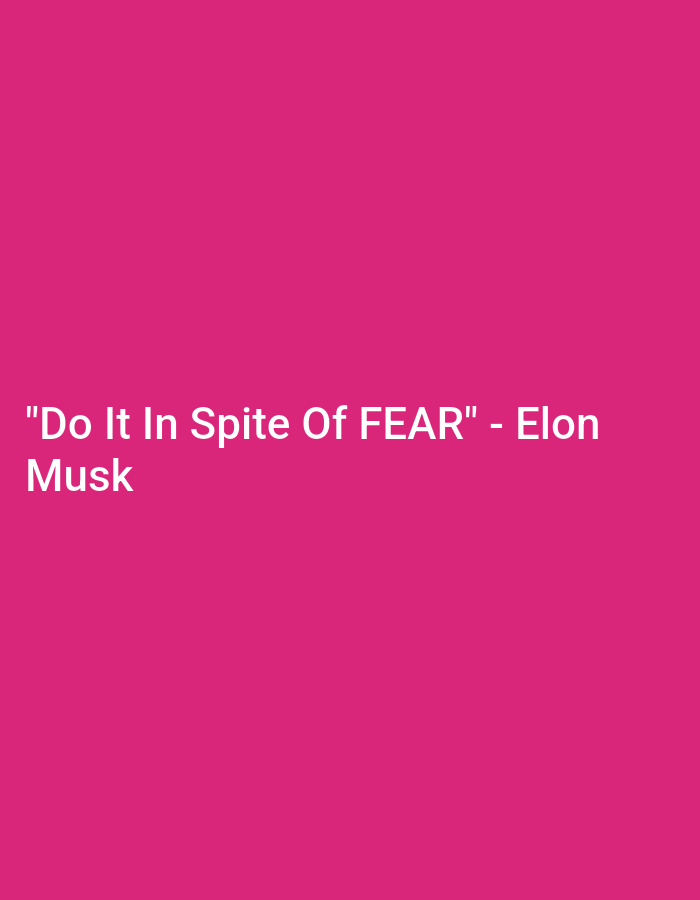 A pink background features white text stating, "Do It In Spite Of FEAR" - Elon Musk