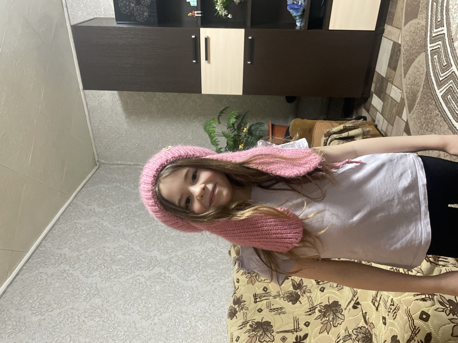 - "A young girl with long brown hair wears a pink, knitted bunny-eared hat" by FM-RsfCR2, licensed under CC BY 4.0