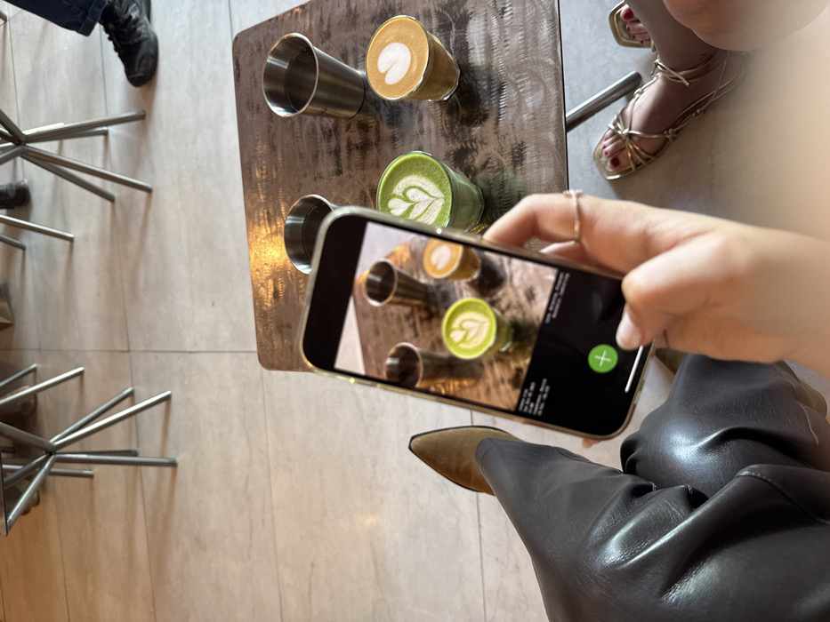 - "The image depicts a high-angle, first-person view of a person photographing drinks on a table within an indoor cafe or restaurant in Mexico City, Mexico" by FM-avfjN2, licensed under CC BY 4.0