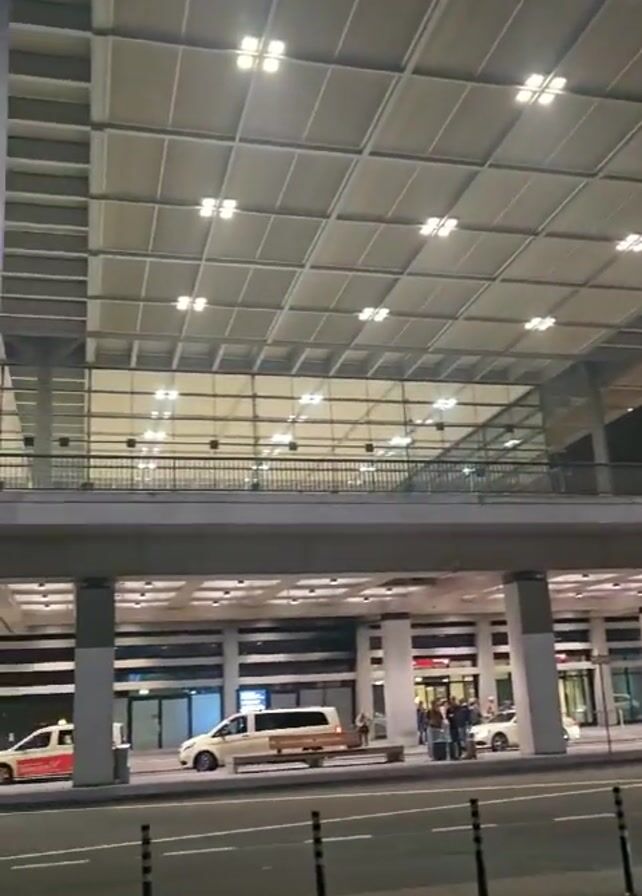 outside of an airport terminal at night