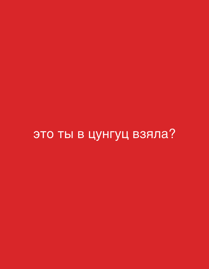 - "A red background displays the white text "ЭТО ТЫ В ЦУНГУЦ ВЗЯЛА?" The text is centered vertically and horizontally" by FM-fSbZr2, licensed under CC BY 4.0